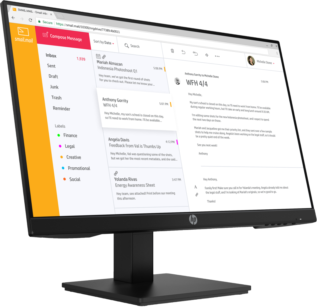 Navigate documents and spreadsheets and work in applications side by side on the 23.8-inch diagonal Full HD IPS screen with 1920 x 1080 resolution. Get convenient stereo audio right at the display.